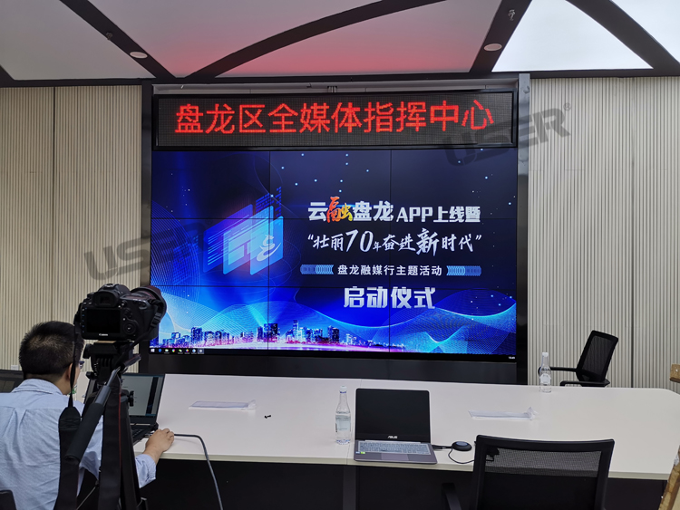 →昆明市盤龍區(qū)融媒體中心55寸拼接屏項目竣工