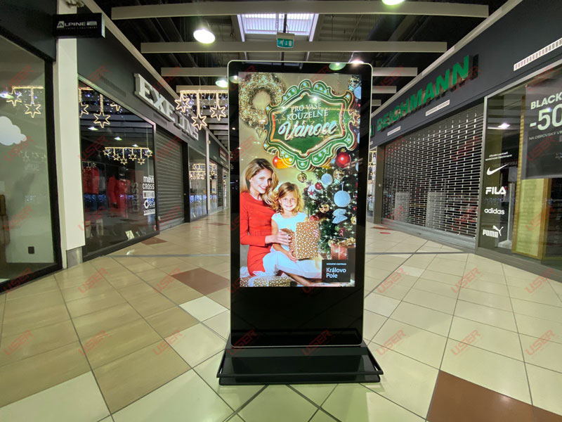 →優(yōu)色專顯65寸雙面納米觸摸落地廣告機(jī)進(jìn)駐捷克某商場(chǎng)