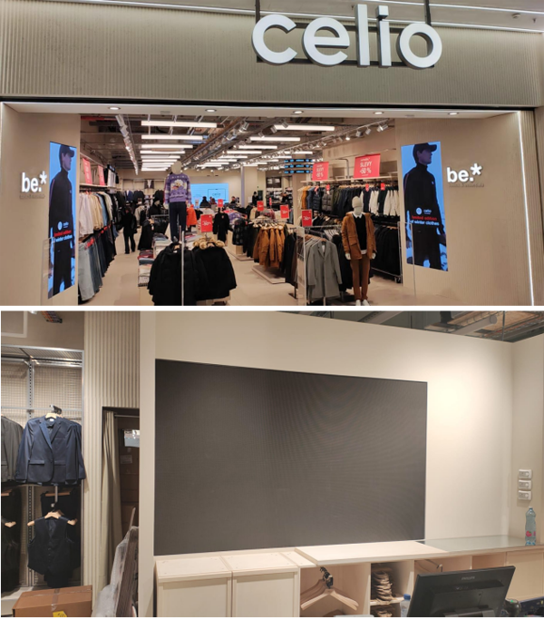 →服裝連鎖門店LED大屏、吊裝圓環(huán)LED屏、條型LED顯示屏、貨架屏